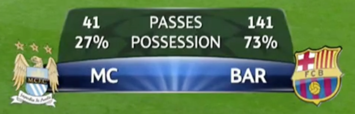 Même après, le rouge City tient le ballon sur certaines séquences. Preuve que le Barça défend différemment, et pas parfaitement. (source : Squawka.com)