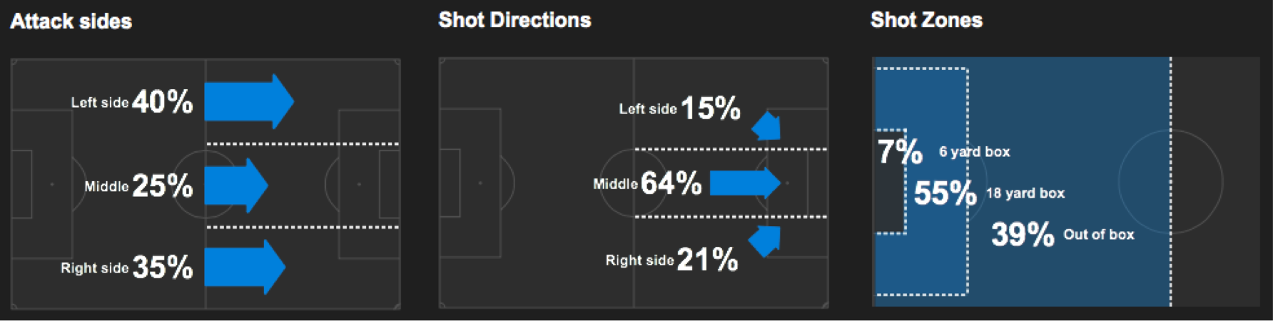 L’OM attaque sur les flancs, le plus souvent à gauche, et conclut dans l’axe ou côté opposé (droite), majoritairement dans la surface, même si la frappe de loin n’est pas proscrite (Imbula et Payet se sont distingués dans cet exercice).