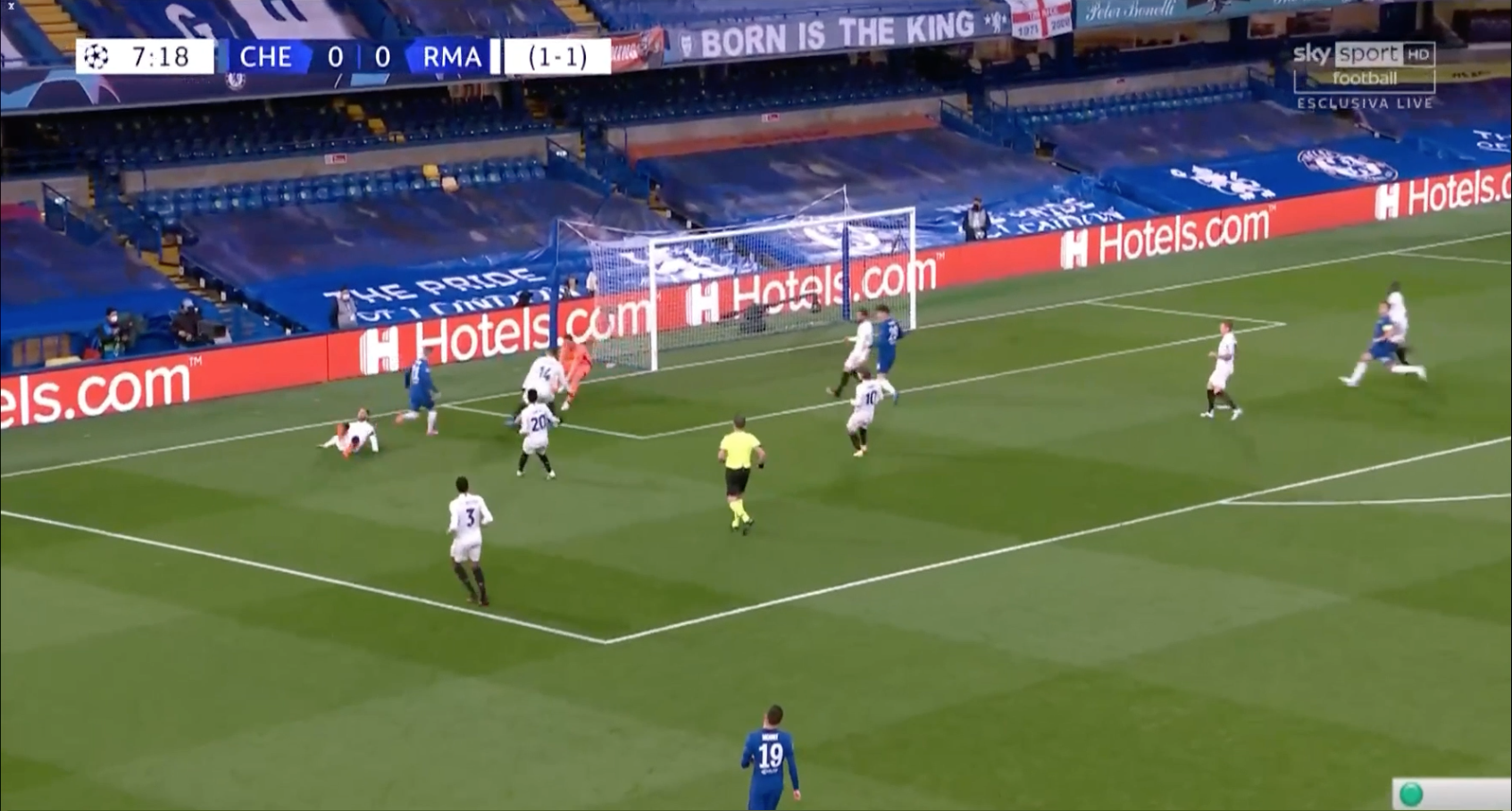 Il choisit « à l’aveugle » de rester aligné pour mettre Werner hors-jeu. Ça passe, mais l’équilibre est précaire et le Real est partiellement déséquilibré. Il cédera 8 minutes plus tard.